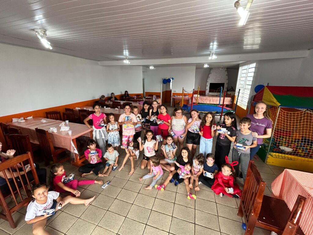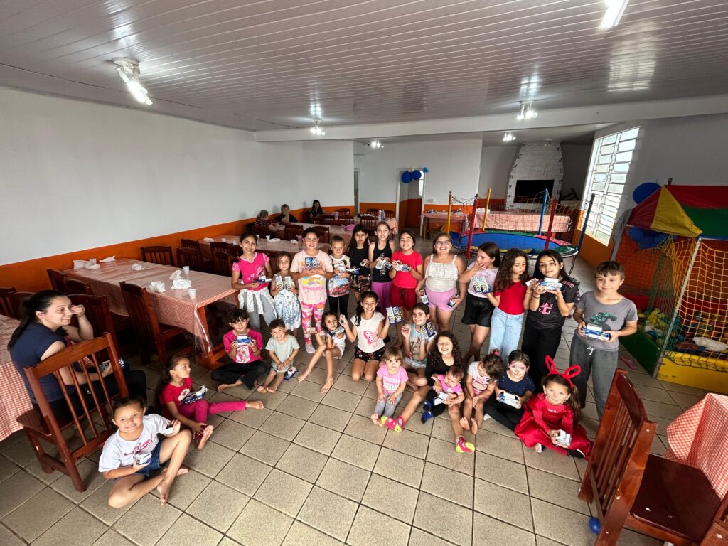 A programação contou com brinquedos e um delicioso lanche, com cachorro-quente preparado com muito cuidado. Além disso, as crianças receberam chocolates, incluindo caixas de Bis e docinhos de festa, tornando a comemoração ainda mais doce e inesquecível.